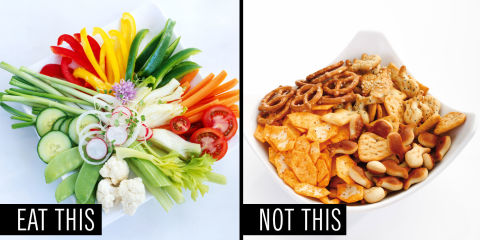 4. Focus on eating more fruits and vegetables instead of eating fewer carbs or less fat. You'll fill up on the nutrients you need to function and fiber to keep you full, so you'll feel satisfied instead of sorely deprived by a bunch of restrictive rules, according to registered dietitianHolley Grainger.